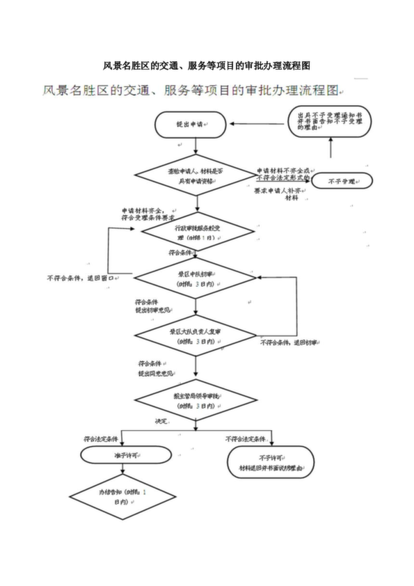 風(fēng)景名勝區(qū)的交通、服務(wù)等項目的審批辦理流程圖