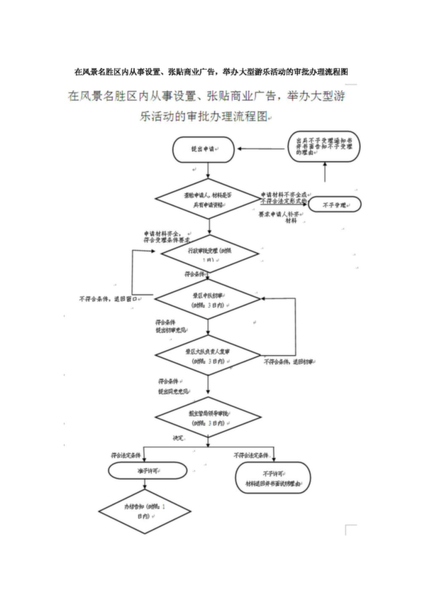 在風(fēng)景名勝區(qū)內(nèi)從事設(shè)置、張貼商業(yè)廣告,舉辦大型游樂活動的審批辦理流程圖