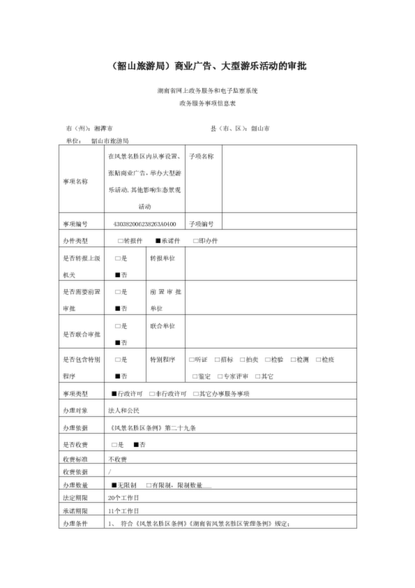 (韶山旅游局)商業(yè)廣告、大型游樂活動的審批