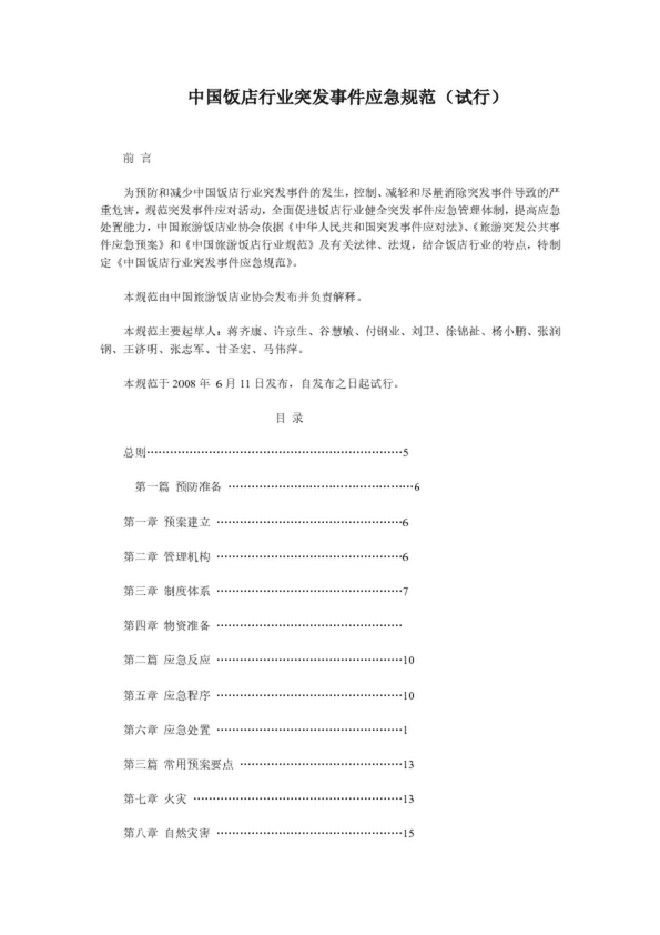 中國(guó)飯店行業(yè)突發(fā)事件應(yīng)急規(guī)范(試行)