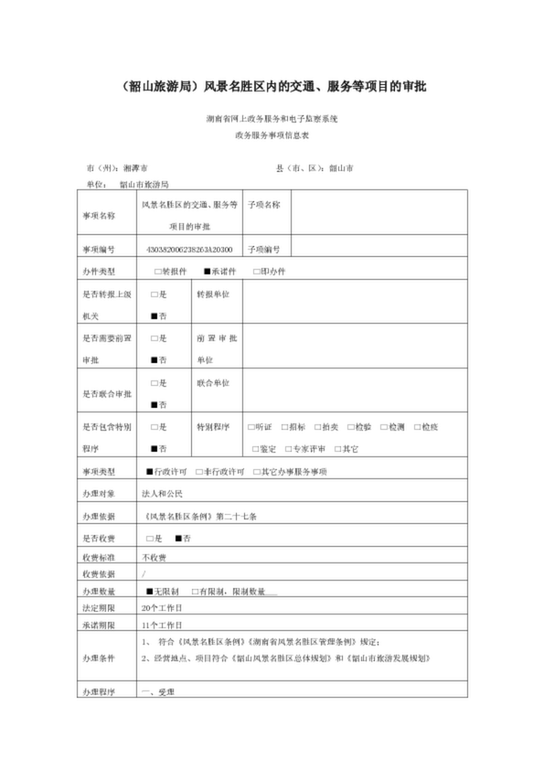 (韶山旅游局)風(fēng)景名勝區(qū)內(nèi)的交通、服務(wù)等項(xiàng)目的審批