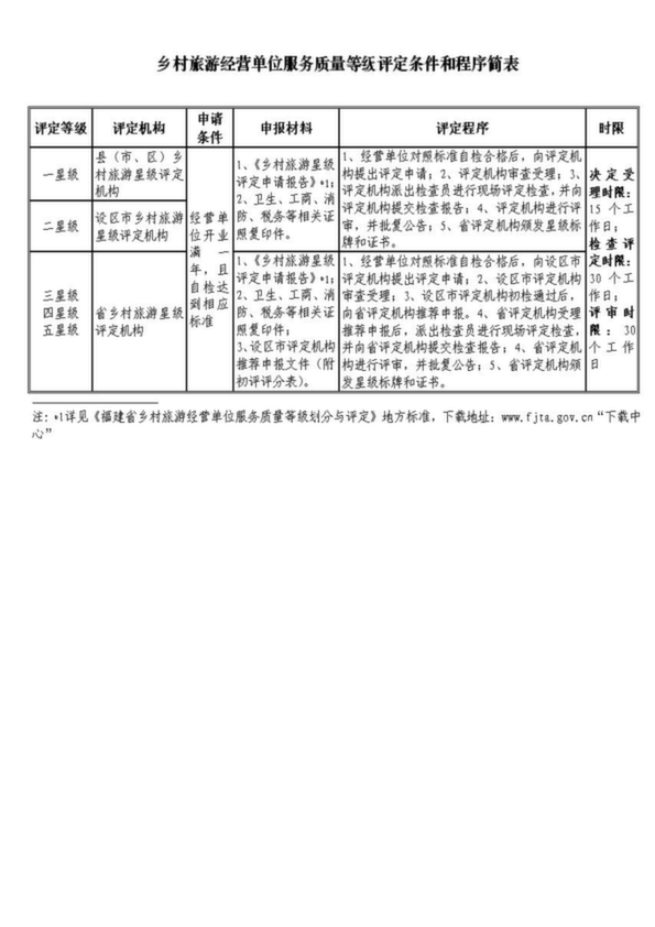 鄉(xiāng)村旅游經(jīng)營單位服務質(zhì)量等級評定條件和程序簡表