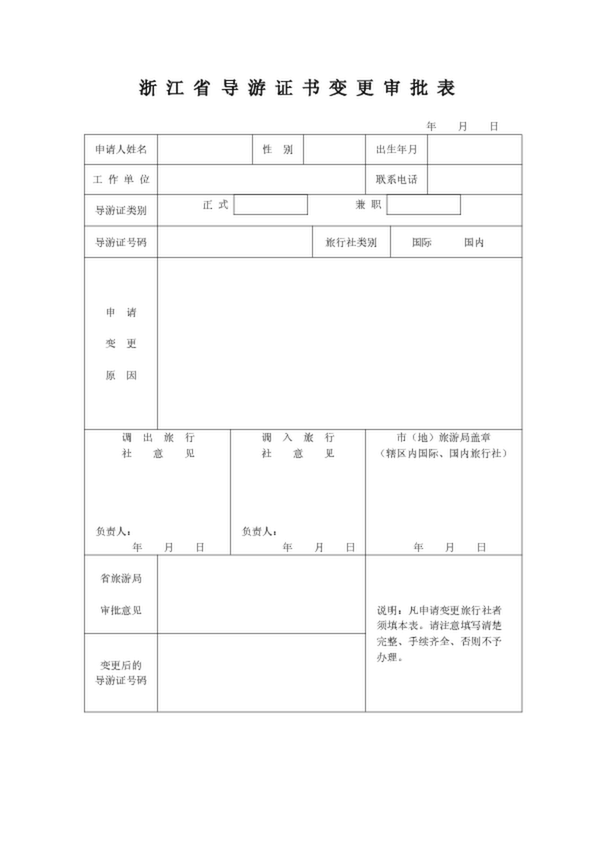 浙江省導游證書變更審批表