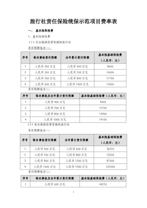 旅行社責(zé)任保險統(tǒng)保示范項目費(fèi)率表下載