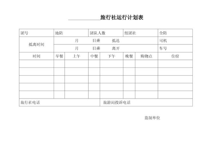 旅行社計(jì)調(diào)-運(yùn)行計(jì)劃表