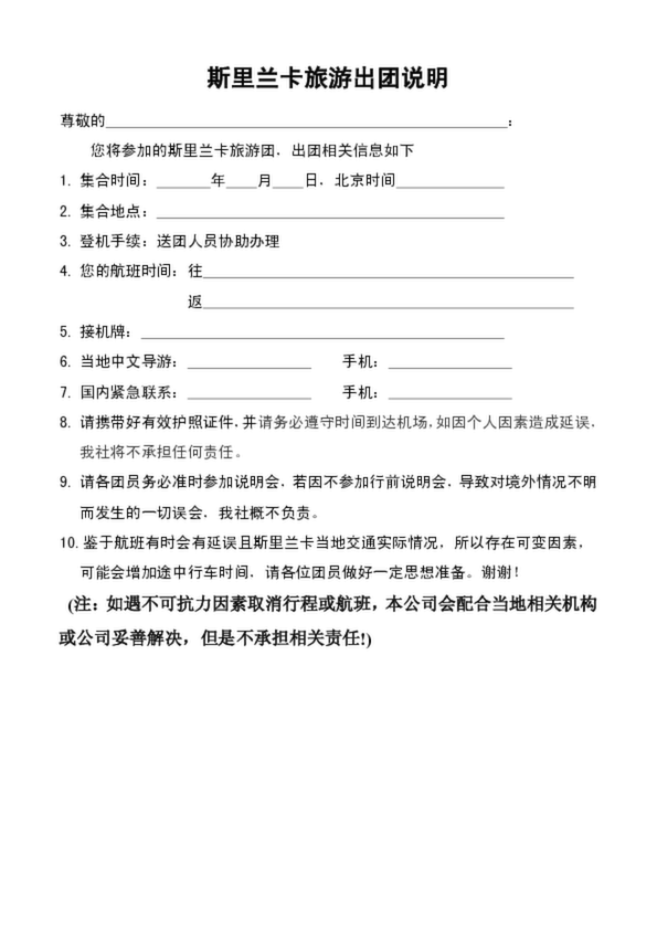 斯里蘭卡出團(tuán)通知