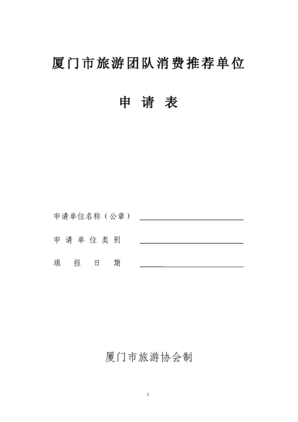 廈門旅游團(tuán)隊(duì)消費(fèi)推薦單位申請(qǐng)表