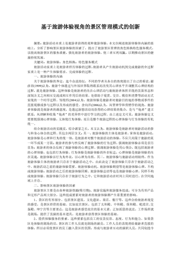 基于旅游體驗視角的景區(qū)管理模式的創(chuàng)新