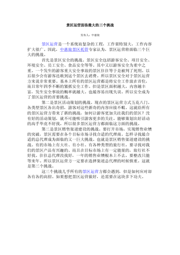 景區(qū)運營面臨最大的三個挑戰(zhàn)