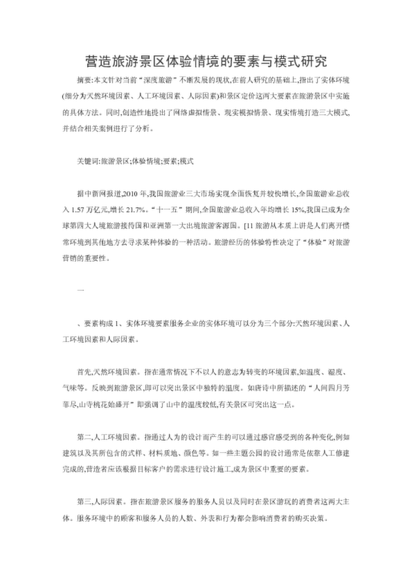 營造旅游景區(qū)體驗情境的要素與模式研究