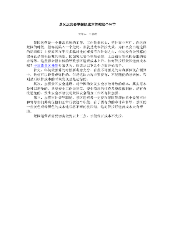 景區(qū)運營要掌握好成本管控這個環(huán)節(jié)