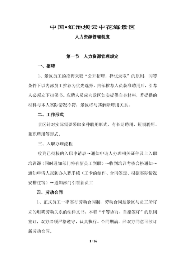 旅游景區(qū)人力資源管理制度