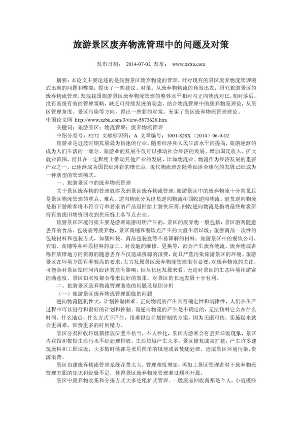 旅游景區(qū)廢棄物流管理中的問題及對策