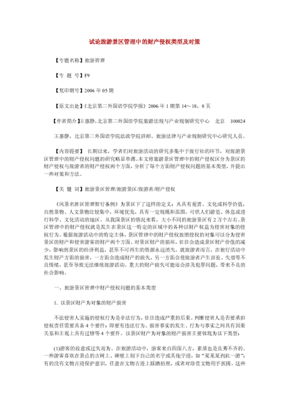 試論旅游景區(qū)管理中的財(cái)產(chǎn)侵權(quán)類型及對策