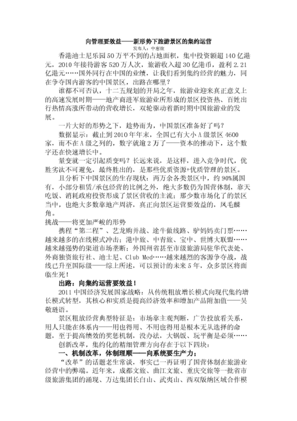 向管理要效益——新形勢下旅游景區(qū)的集約運營