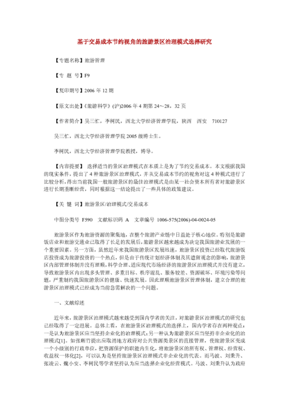 基于交易成本節(jié)約視角的旅游景區(qū)治理模式選擇研究(30.50KB)