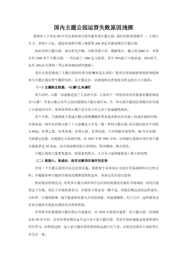 國(guó)內(nèi)主題公園運(yùn)營(yíng)失敗原因淺探