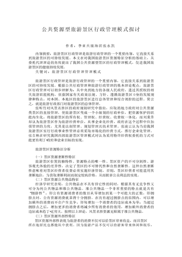 公共資源型旅游景區(qū)行政管理模式探討