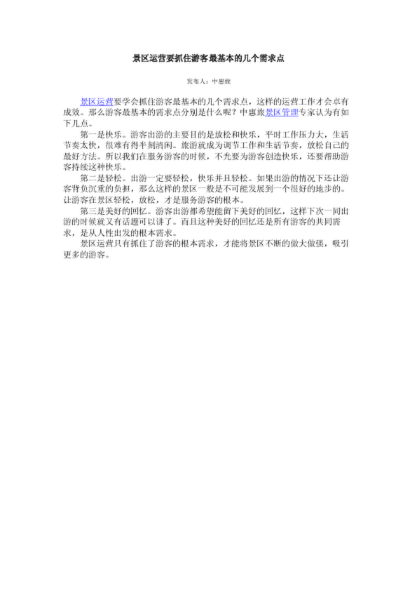 景區(qū)運營要抓住游客最基本的幾個需求點