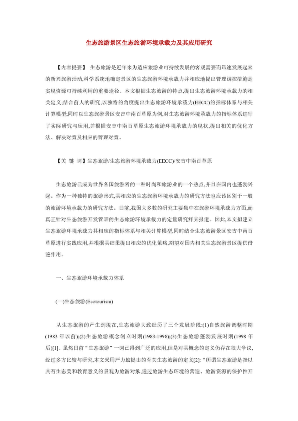 生態(tài)旅游景區(qū)生態(tài)旅游環(huán)境承載力及其應(yīng)用研究