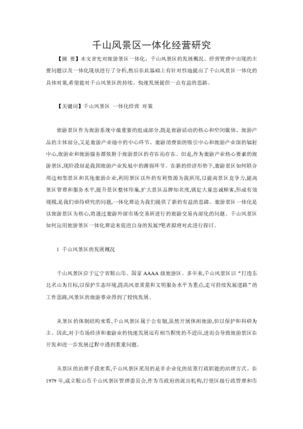 千山風(fēng)景區(qū)一體化經(jīng)營研究
