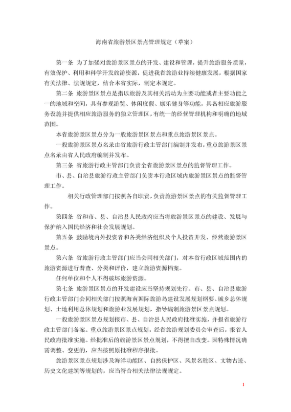 海南省旅游景區(qū)景點(diǎn)管理規(guī)定(草案)