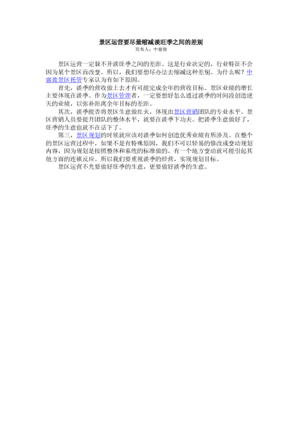 景區(qū)運(yùn)營要盡量縮減淡旺季之間的差別