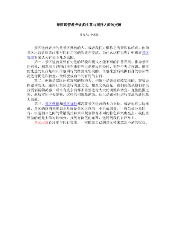 景區(qū)運(yùn)營(yíng)者應(yīng)該多注重與同行之間的交流