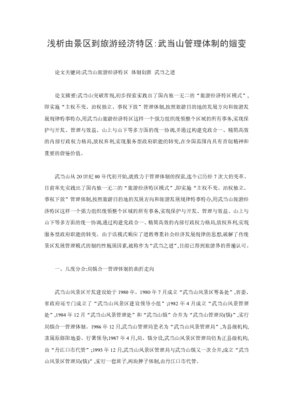 淺析由景區(qū)到旅游經(jīng)濟(jì)特區(qū):武當(dāng)山管理體制的嬗變