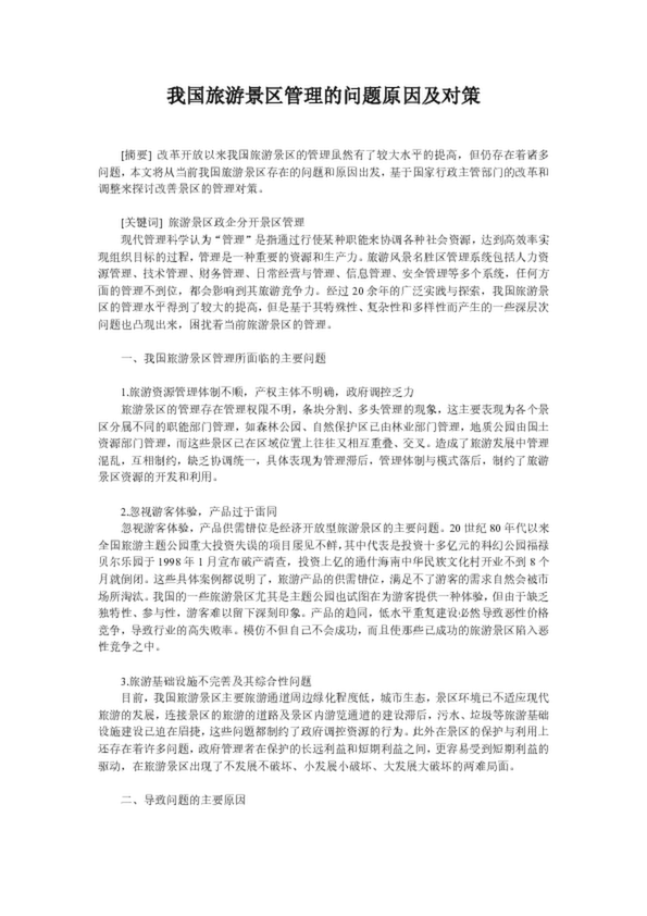 我國(guó)旅游景區(qū)管理的問題原因及對(duì)策