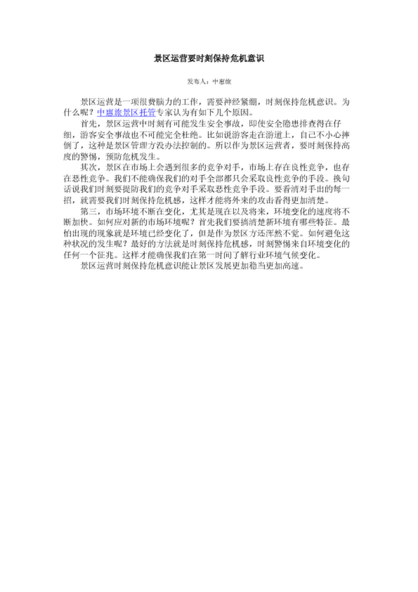 景區(qū)運(yùn)營(yíng)要時(shí)刻保持危機(jī)意識(shí)