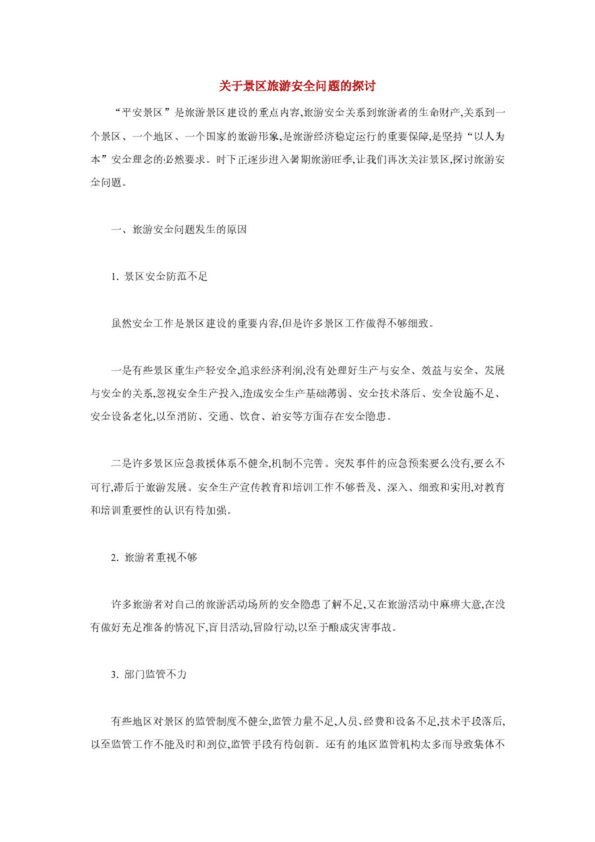 關(guān)于景區(qū)旅游安全問題的探討