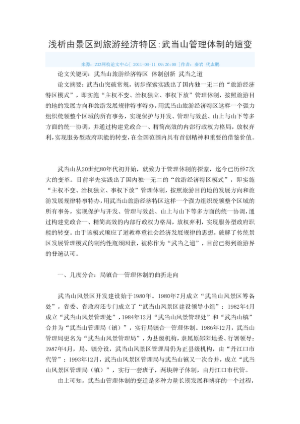 淺析由景區(qū)到旅游經(jīng)濟(jì)特區(qū)武當(dāng)山管理體制的嬗變