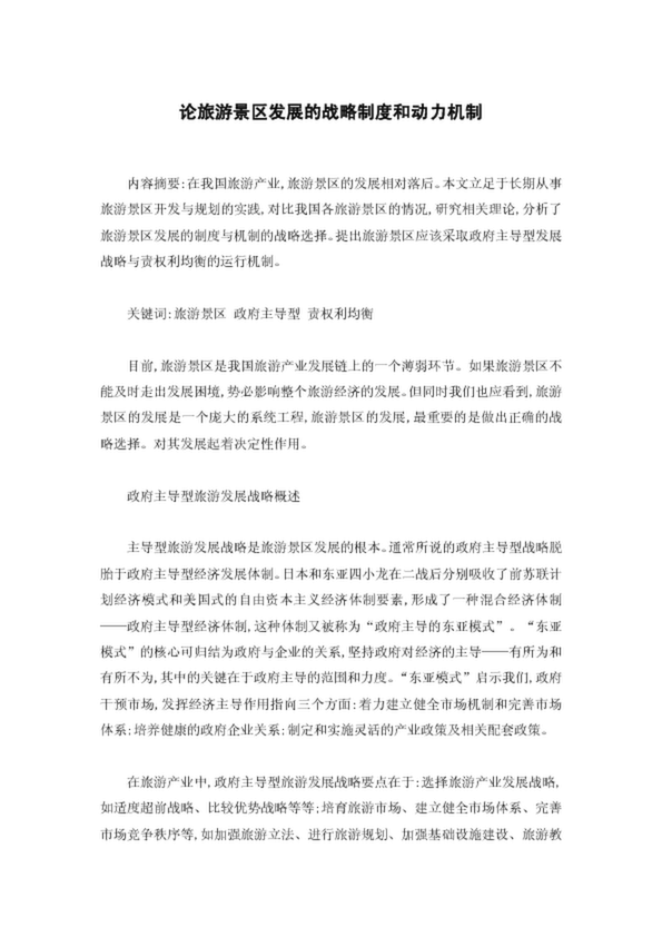 論旅游景區(qū)發(fā)展的戰(zhàn)略制度和動(dòng)力機(jī)制
