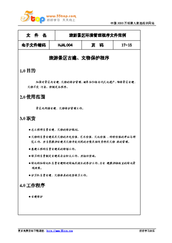 旅游景區(qū)環(huán)境管理程序文件范例_古建文物保護程序