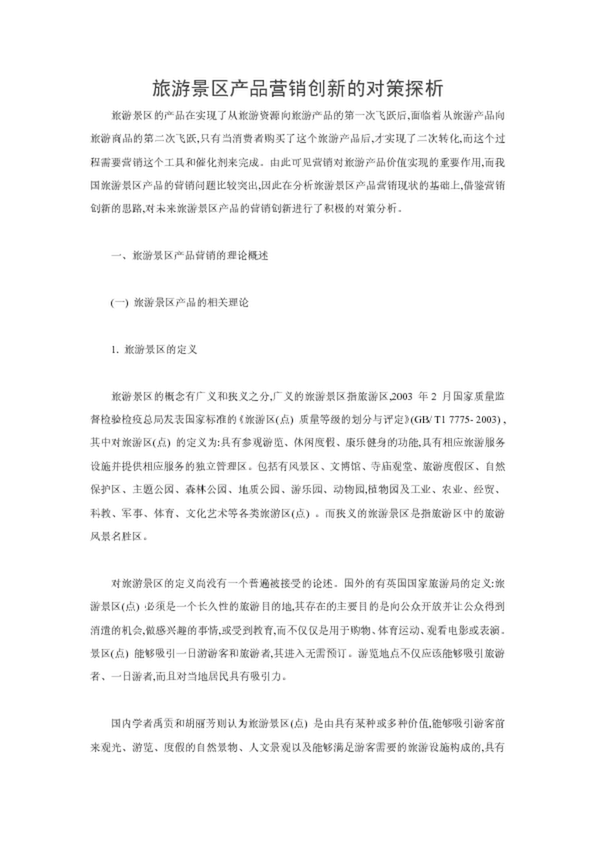 旅游景區(qū)產(chǎn)品營(yíng)銷創(chuàng)新的對(duì)策探析(28.50KB)