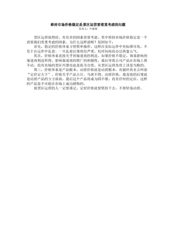 維持市場價格穩(wěn)定是景區(qū)運營要著重考慮的問題