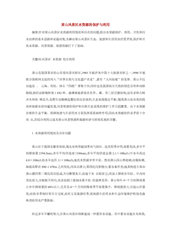 黃山風(fēng)景區(qū)水資源的保護(hù)與利用