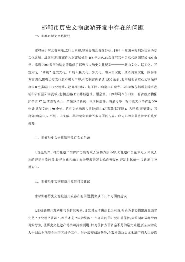 邯鄲市歷史文物旅游開發(fā)中存在的問題