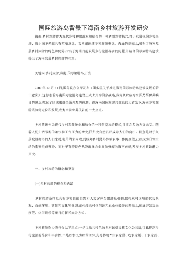 國際旅游島背景下海南鄉(xiāng)村旅游開發(fā)研究