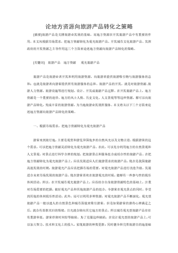 論地方資源向旅游產(chǎn)品轉(zhuǎn)化之策略