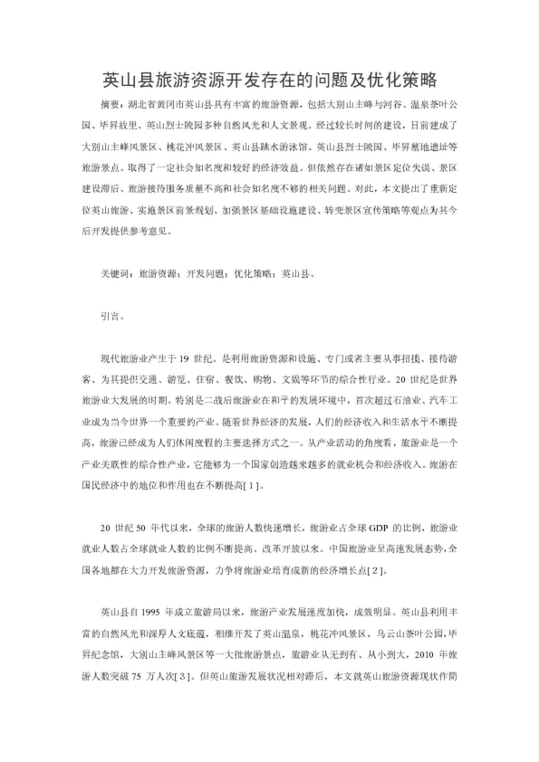 英山縣旅游資源開發(fā)存在的問題及優(yōu)化策略