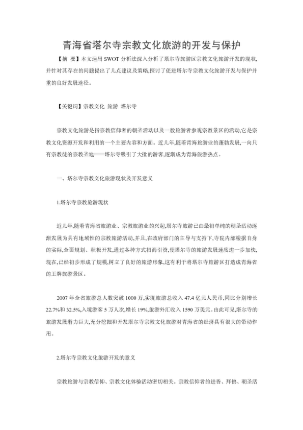 青海省塔爾寺宗教文化旅游的開(kāi)發(fā)與保護(hù)