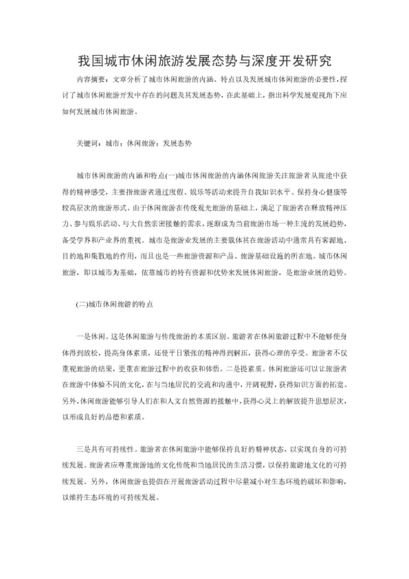 我國(guó)城市休閑旅游發(fā)展態(tài)勢(shì)與深度開發(fā)研究
