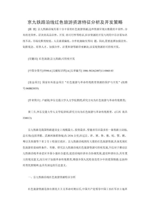 京九鐵路沿線紅色旅游資源特征分析及開發(fā)策略