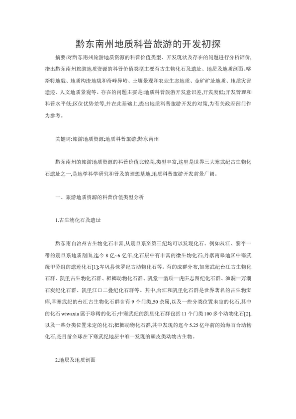黔東南州地質(zhì)科普旅游的開發(fā)初探
