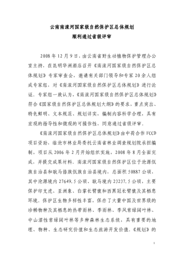 云南南滾河國(guó)家級(jí)自然保護(hù)區(qū)總體規(guī)劃(20.50KB)