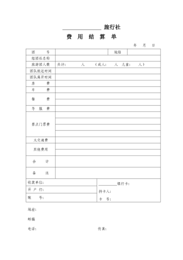 2014地接社費(fèi)用結(jié)算單