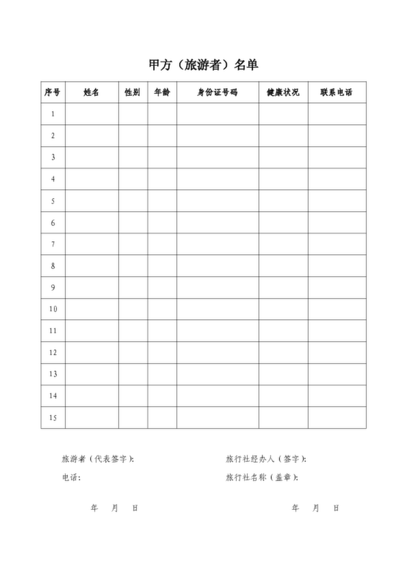 甲方(旅游者)名單