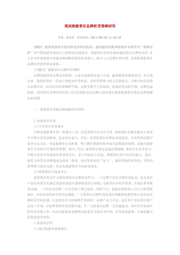 我國旅游景區(qū)品牌經(jīng)營策略研究